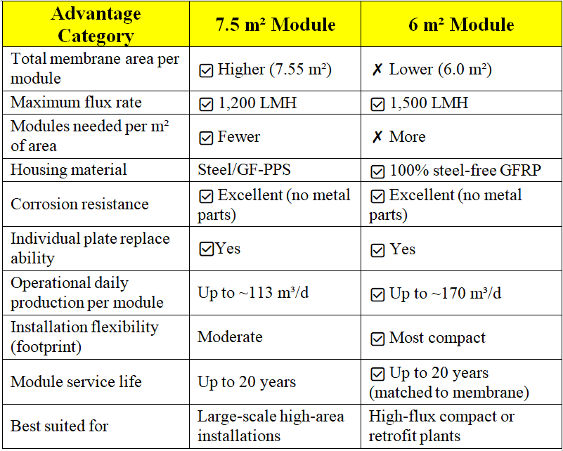 For Greenfield large-scale plants with ample space, the 7.5 m² module delivers capacity efficiency. For retrofit, compact, or high-throughput applications, the 6 m² module's flux performance and engineering design innovations give it the broader practical advantage.